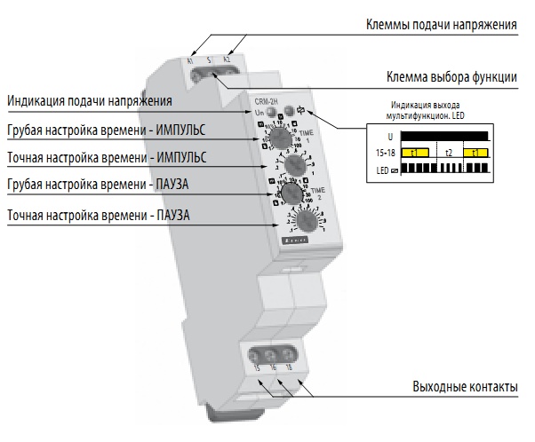 Реле времени - циклователь с независимо настраиваемым временем размыкания и замыкания выхода.